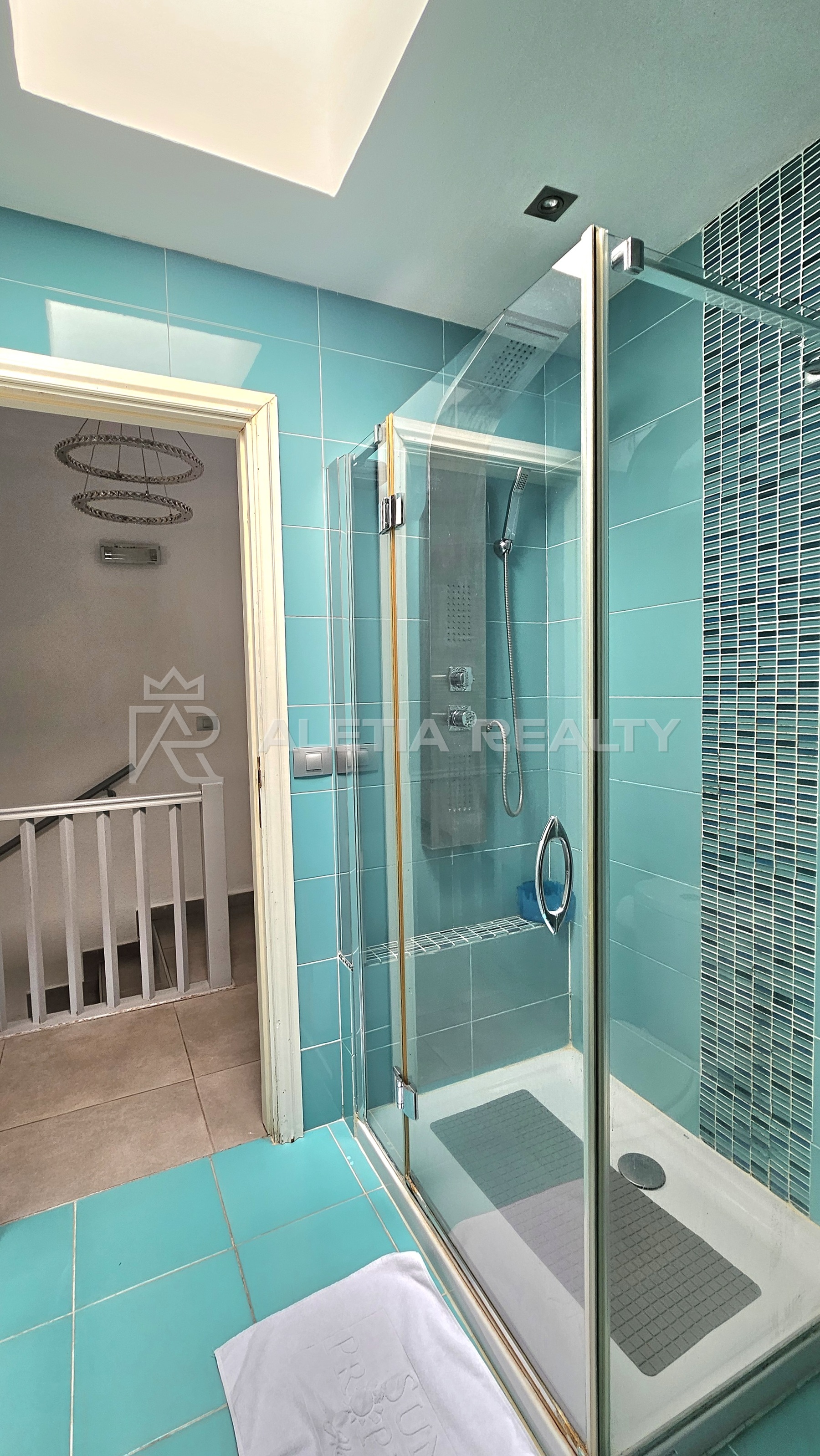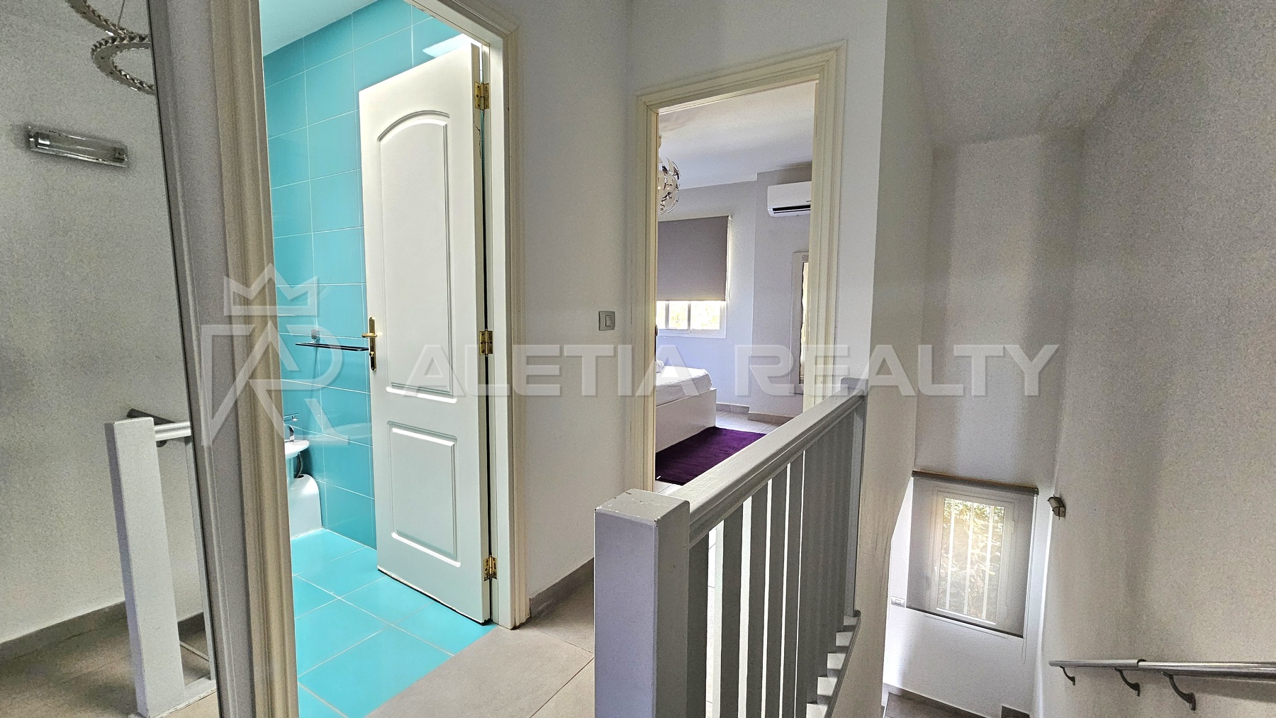 On the upper floor there are 2 large bedrooms, two bathrooms and a small balcony overlooking the ocean.