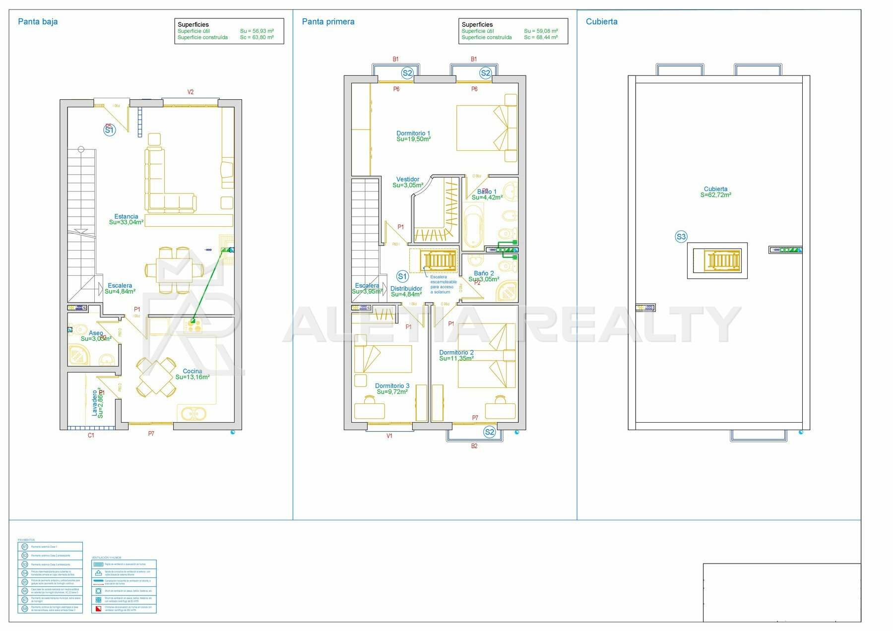 -. Superficie útil viviendas tipo = 116,81 m² cada vivienda