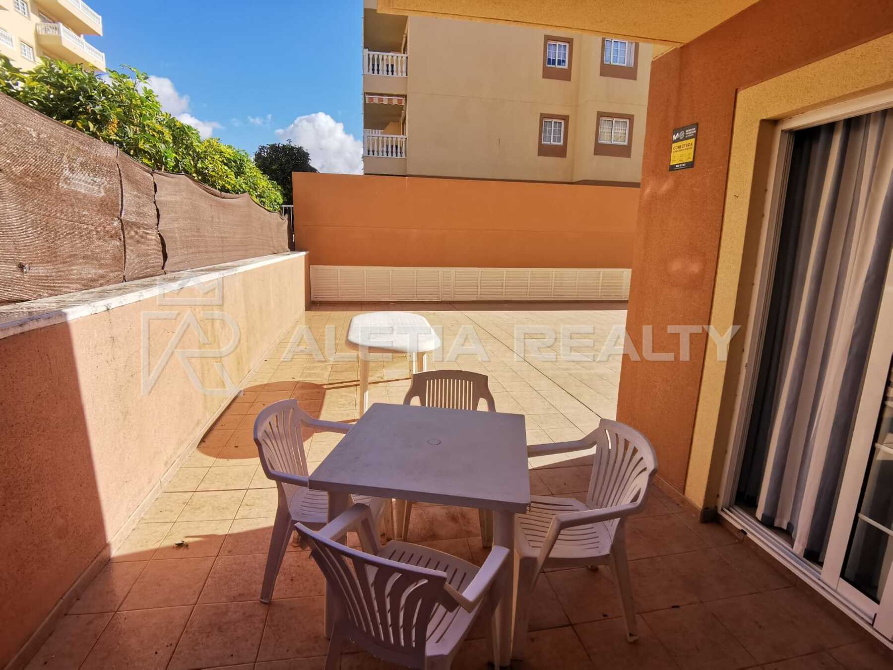 Квартира на первом этаже с частичным видом на горы, выходящая на юго-восток, имеет кухню, гостиную, 2 спальни, ванную комнату и террасу 93м2! Также имеется гараж и кладовая. Возможен 2-й санузел. Лицензия ВВ. Он расположен в жилом районе, который предлагает большой общий бассейн с подогревом, большие помещения общего пользования, оборудованные освещением, и пандусы для людей с ограниченными возможностями. Урбанизация тихая и безопасная, пляж в 10 минутах ходьбы или 2 минутах на машине. Этот жилой комплекс, расположенный на южном побережье Тенерифе, в окружении привилегированной среды, полной спокойствия и пейзажей невероятной красоты, является частью одного из самых привилегированных районов южной части острова, расположенного на территории двух охраняемых природных территорий. Районы большой природной ценности, такие как природный памятник горы Гуаса, разделяющий города Лос-Кристианос и Пальм-Мар, а также природный заповедник Мальпаис-де-ла-Раска. Район Пальм-Мар — это жилой район Ароны с супермаркетами, ресторанами и барами. С самого начала он был ориентирован как другое место отдыха на юге Тенерифе, стремящееся прежде всего к спокойствию, но находящееся недалеко от туристических центров Плайя-де-лас-Америкас и Лос-Кристианос, считающихся лучшими районами Тенерифе для тех, кто ищет солнце и пляж. В 7 км от Коста Адехе и в 72 км от Санта-Крус-де-Тенерифе. Поле для гольфа Лос-Палос находится в 2 км, а район Лас-Галлетас с его пристанью, магазинами, барами, ресторанами, дайвинг-центрами и пляжами — в 4 км.
